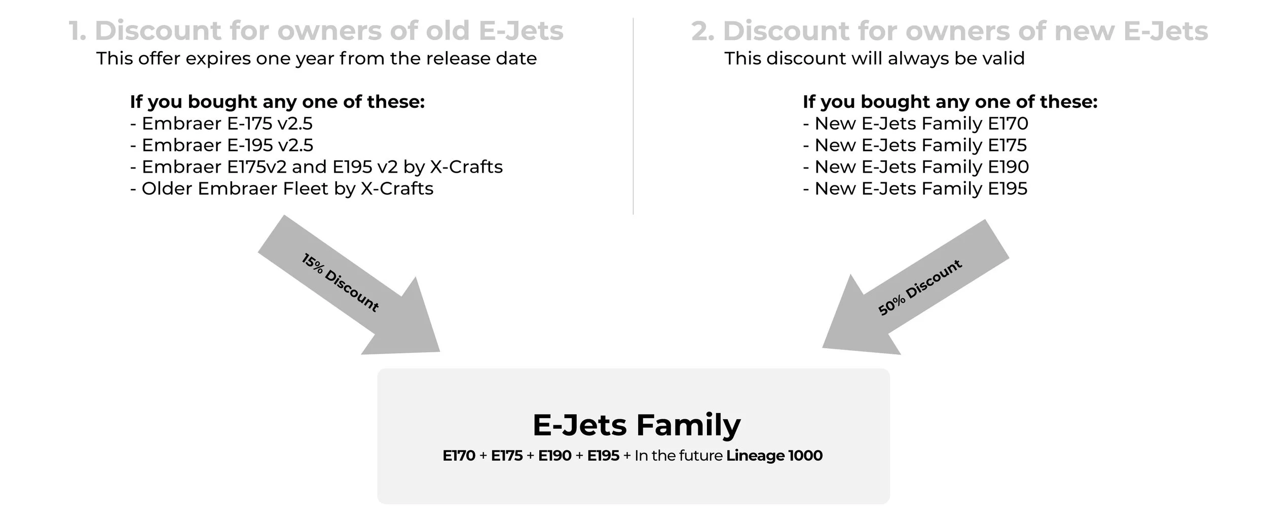 E-Jets Family, it will not apply if you want to buy a single aircraft.This discount only applies to paying customers of the older